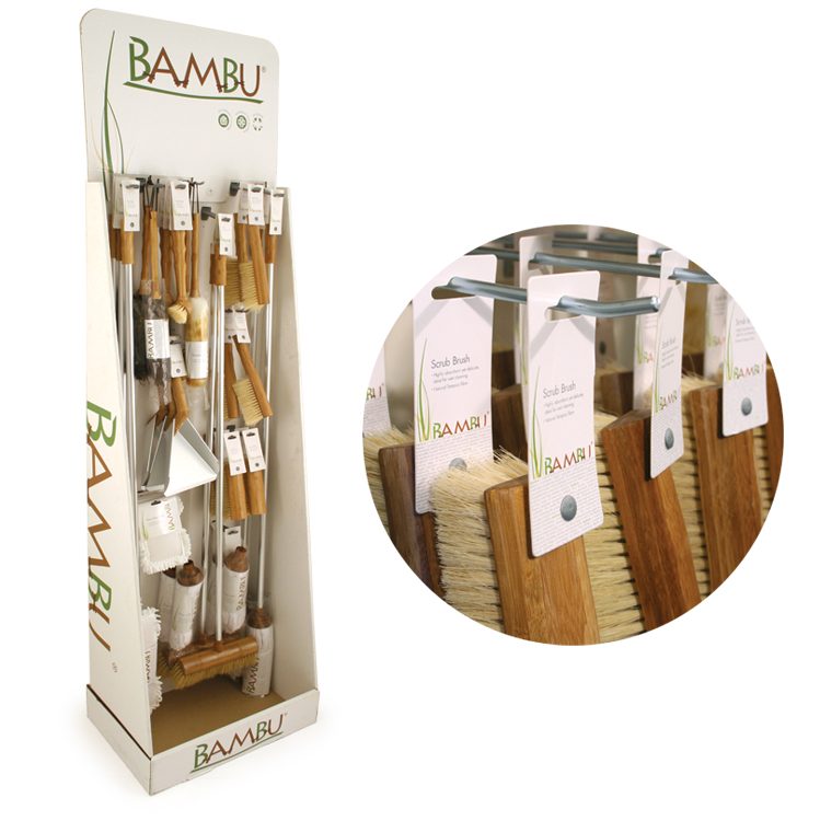 A range of cleaning products created in 3D and completed as a store display unit.